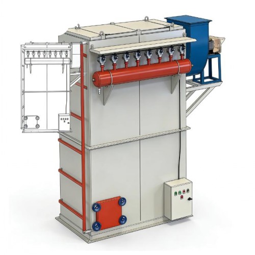 HMC单机脉冲布袋除尘器是一种结构紧凑、体积较小的袋式除尘设备,适用于各类工矿企业对粉尘进行控制和收集。它主要由箱体、过滤室、滤袋、净气室、灰斗、脉冲喷吹清灰装置、卸灰阀(或翻板阀)、电控系统等部分构成。箱体采用焊接方式制作,整体刚性好,检修门处使用密封条,确保设备运行时密封性能可靠,不易漏风。
